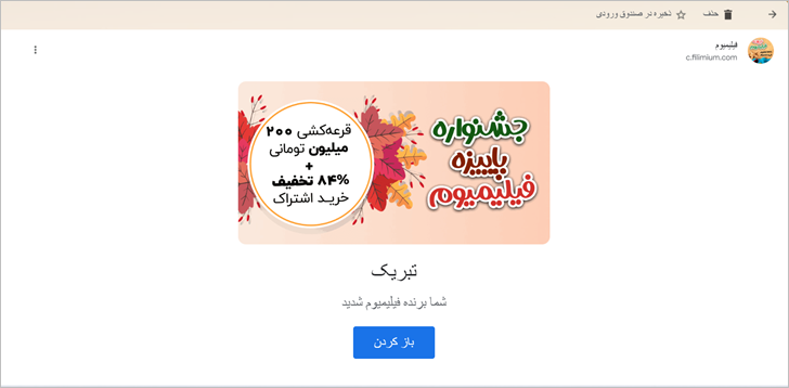 به یکی از ایمیلهای کمپینهای ما در تصویر زیر نگاه کنید. برای کسب اطلاعات بیشتر، پیشنهاد میکنیم حتماً مقالهٔ «منظور از بازاریابی ایمیلی چیست (بررسی انواع استراتژیها و روشها)» را مطالعه کنید.