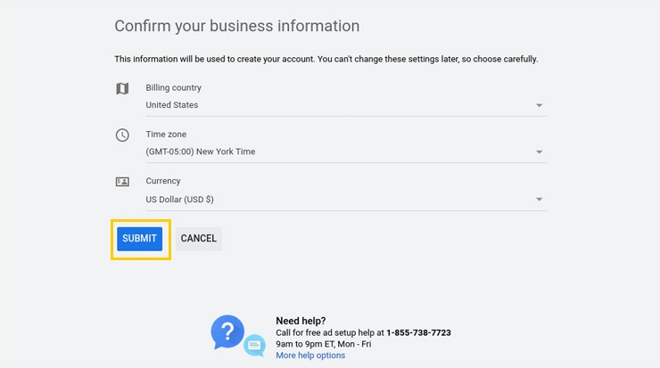 پس از آن، بدون اینکه چیزی را تغییر دهید روی «SUBMIT» کلیک کنید. نگران نباشید؛ شما به گوگل ادز گفتهاید که نمیخواهید کمپینی اجرا کنید.