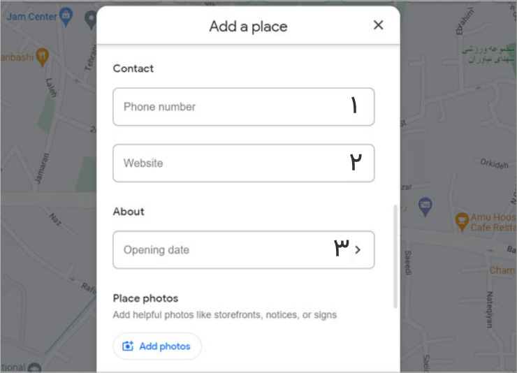بخش انتهایی یا «About» هم مربوط به تاریخ شروع فعالیت مکانی است که میخواهید ثبت کنید. در انتها، اگر میخواهید عکسهای مجموعه را به لوکیشن ثبتی اضافه کنید، گزینۀ «Add a Photo» را لمس کنید.