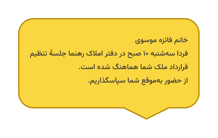یک کاربرد دیگر هم این است که موعد قرار حضوری در آژانس املاک برای تنظیم قرارداد را یادآوری کنید: