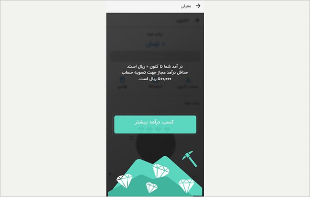 برای برداشت درآمد هم بهمحض اینکه درآمد شما به حداقل ۵۰ هزار تومان برسد، میتوانید اقدام کنید. فقط لازم است شمارهٔ شبا، اطلاعات هویتی و تصویر کارت ملی خود را در بخش کسب درآمد وارد کنید.